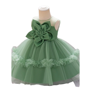New Summer ärmelloses Prinzessinnen kleid für Mädchen 0-5 Jahre einfarbige pompöse Spitzen blume O-Ausschnitt Geburtstags feier im chinesischen Stil